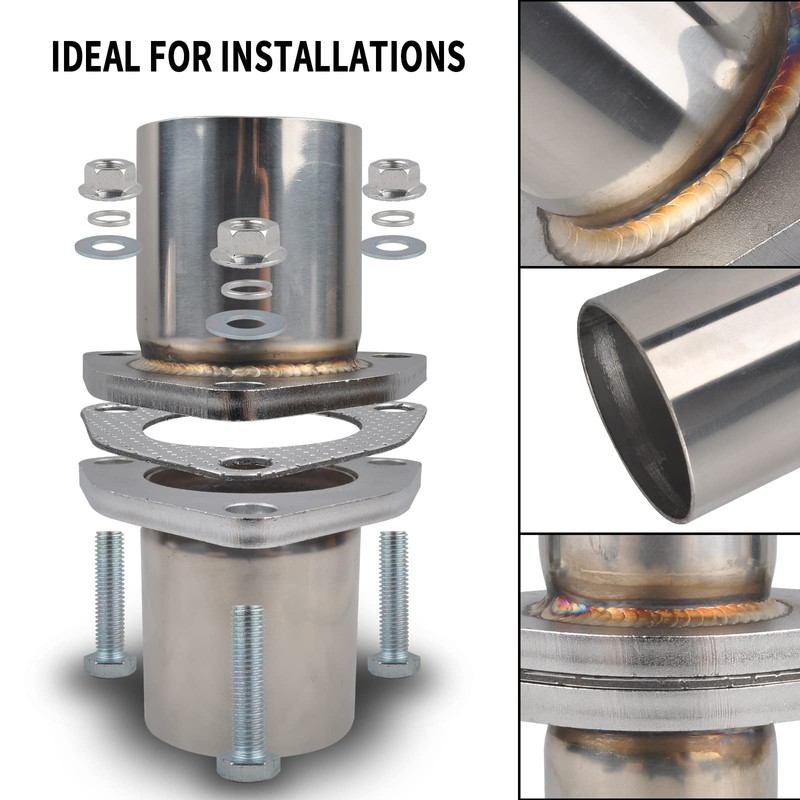 FGJQEFG Exhaust Flange Bolts Quick Fix Repair Pipe Kit w/Gasket & Hardware, 2.5'' Inch OD 3 Bolts T304 Stainless Steel Universal Flange Replacement Kit