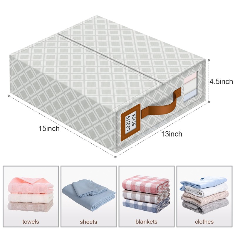 - 【Clear Window Visibility】Quickly identify contents through the see-through panel design, making bed sheet organizer storage 3x more efficient than traditional fabric bins without visual indicators