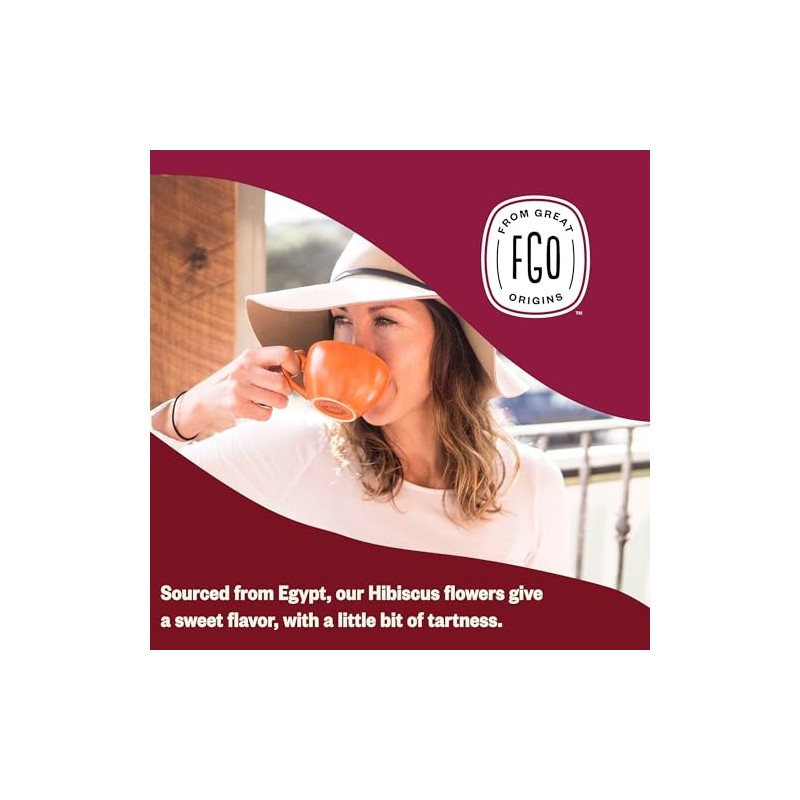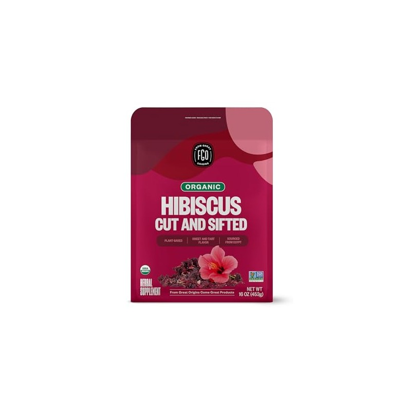 FGO Té orgánico de flores de hibisco, cortado y tamizado, bolsa a granel de 16 oz que se puede volver a cerrar, el embalaje puede variar (paquete de 1)