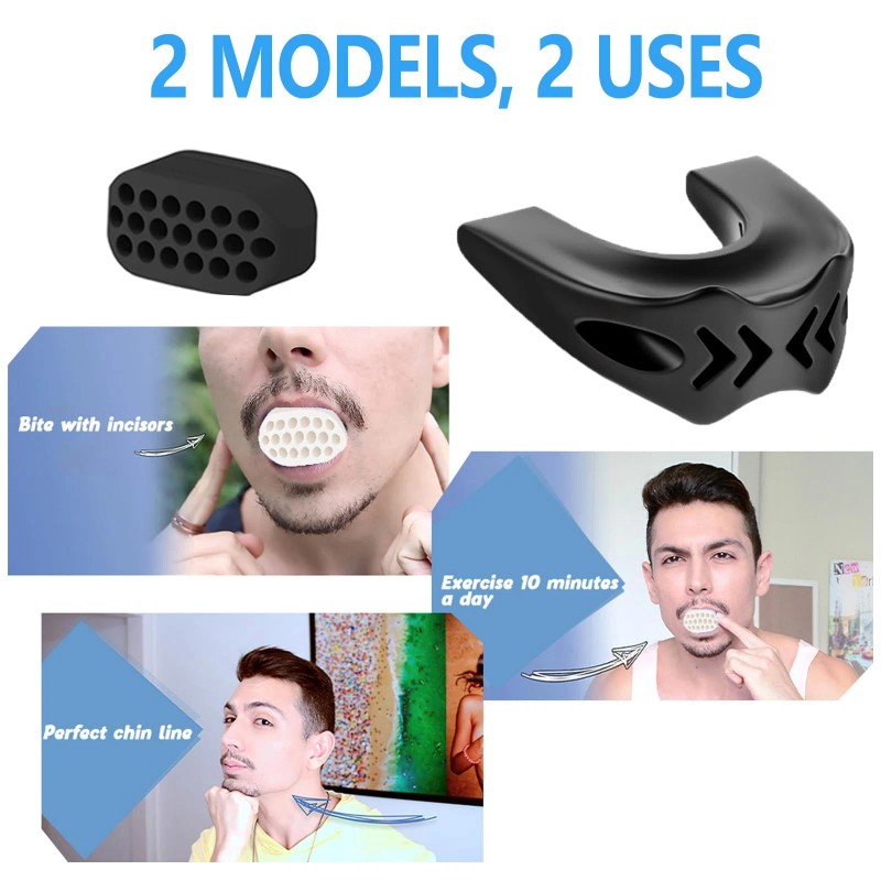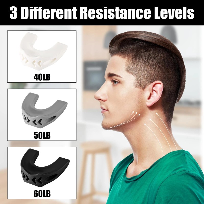 【2 Different Models Sets for Jaw Exerciser 】You will receive 2 new models sets of jaw exerciser ,These jaw exerciser have 3 resistance levels (40 lbs, 50 lbs, 60 lbs resistance).This is a perfect jaw exerciser for men and women for jaw workout.Activate facial muscles while working out and increase facial blood flow and oxygenation. Requires just 5-10 minutes of daily chewing exercises in order to achieve a defined jawline.
