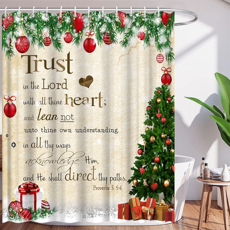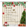 FGYGYK Merry Christmas Shower Curtain Bible Verse Inspirational Quotes Xmas Tree and Balls Snowflake Vintage Winter Holiday Polyester Curtains Bathroom Decor with Hooks 70" Wx70 H
