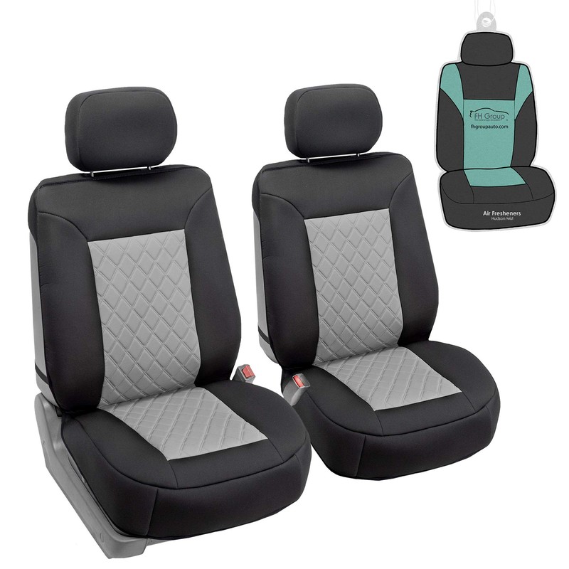 FH Group Car Seat Cover Cushion - 2 Pack Seat Covers for Cars Trucks SUV, Gray Black Neosupreme Car Seat Cushions, Waterproof Car Seat Cover Cushion, Universal Fit Car Seat Protector