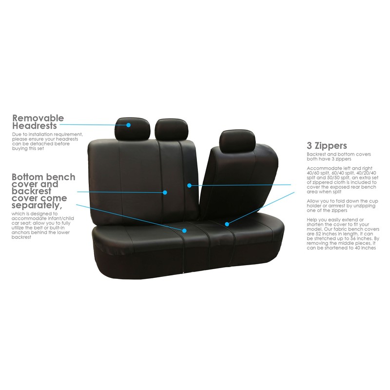 - 🚘 [FITS ALL SPLIT REAR BENCHES] Our rear seat covers are fully compatible with 50/50, 40/60, or 60/40 split rear benches or longer benches. The cover features 3 zippers in the backrest AND bottom, and extra mesh pieces so you can move the rear seat freely or use the middle arm rests and get full protection.