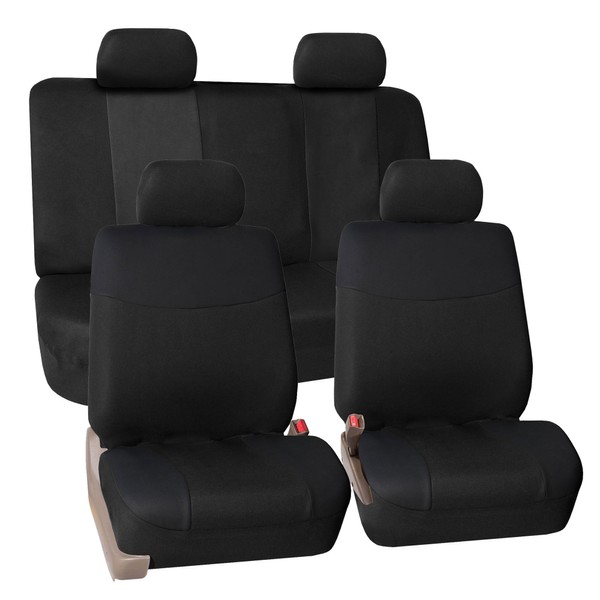 FH Group FH-FB056114 Modern Flat Cloth Car Seat Covers Black Color- Fit Most Car, Truck, SUV, or Van
