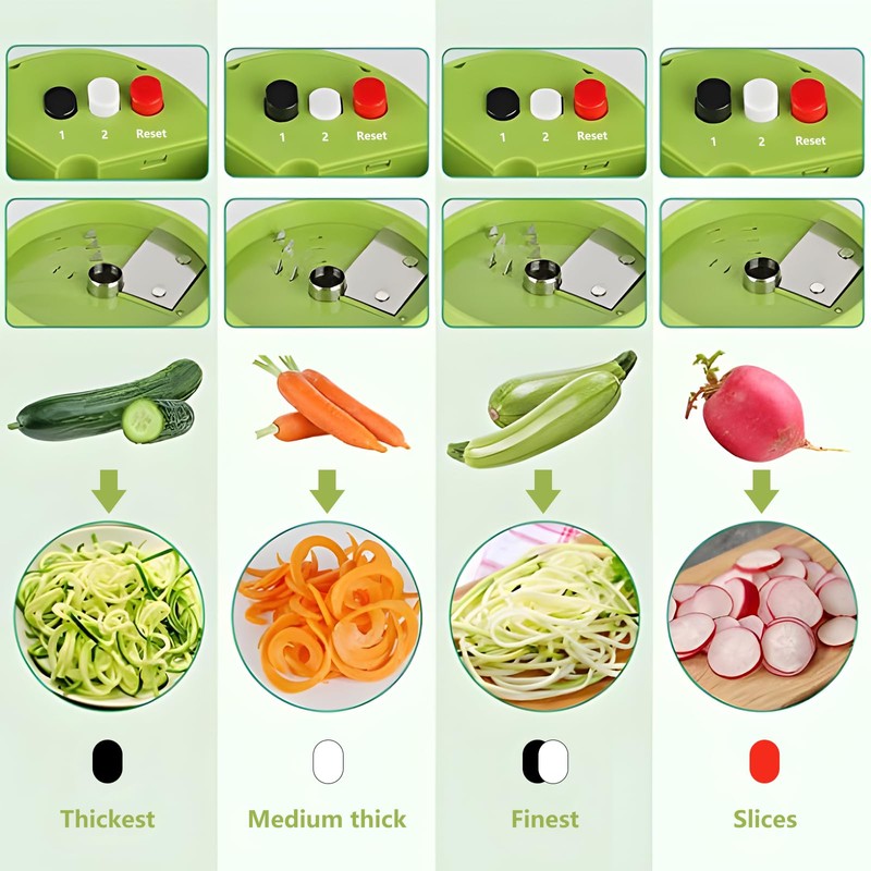 - Easy to use: spiral cutter vegetables electric your safety is our top priority. This trimmer has safety features such as a blade guard and a non-slip handle to avoid accidents during use