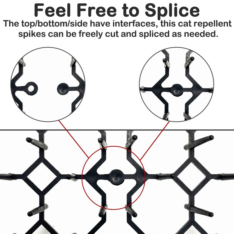 • 【Cuttable】The top/bottom/side have interfaces, this cat repellent spikes can be freely cut and spliced as needed. Easy to measure and cut the cat scat mat. Easy to use, just place in a specific area and go.【Cuttable】The top/bottom/side have interfaces, this cat repellent spikes can be freely cut and spliced as needed. Easy to measure and cut the cat scat mat. Easy to use, just place in a specific area and go.