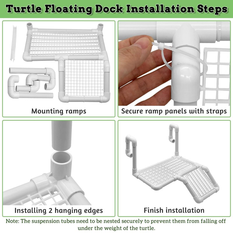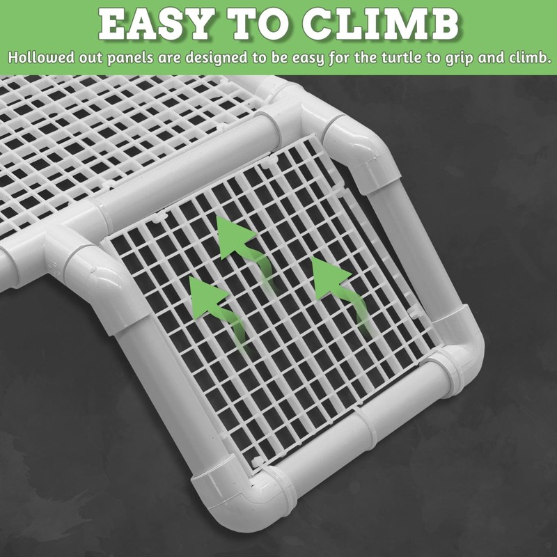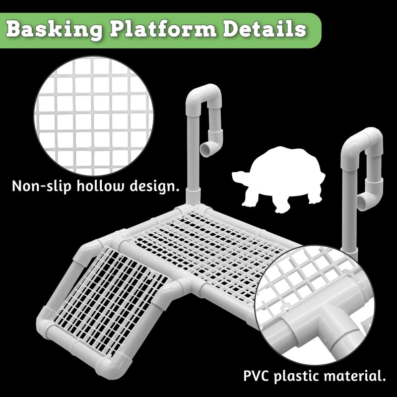 [Hollow Plane Design]: Floating turtle dock hollow panel is convenient for the tortoise's paws to grab and climb on the platform, and it can also be ventilated while basking in the sun. Sunbathing helps pets' bone growth, metabolism and food digestion