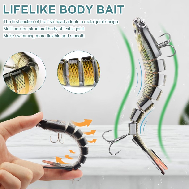 - Multi-joint bait body: 13.28 cm/19 g 8-segment bait. Equipped with two ultra-sharp FZ triple hooks. Connected by steel hinges for lifelike tail movements. Contains rattling steel balls for balance and lure sounds - magnetically attracts fish.
