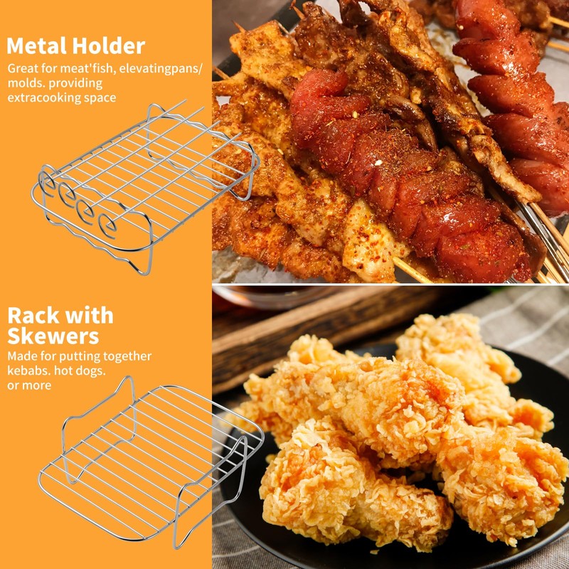 The ​ FHISKUNYU 8-piece accessory set has been specially designed for Ninja Foodi AF500EU/DZ201/401/550, but also fits other dual zone models with similar basket dimensions (up to 10.4L). With this set you can transform your fryer into a multifunctional aid: