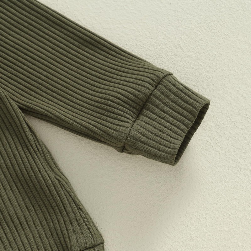 - Infant girl boy long sleeve ribbed cotton hoodie, elastic pants 2pcs clothes set, hoods can keep the head warm, there are two buttons on the collar, multiple solid color set options: blue, brown, green, army green, beige, gray.