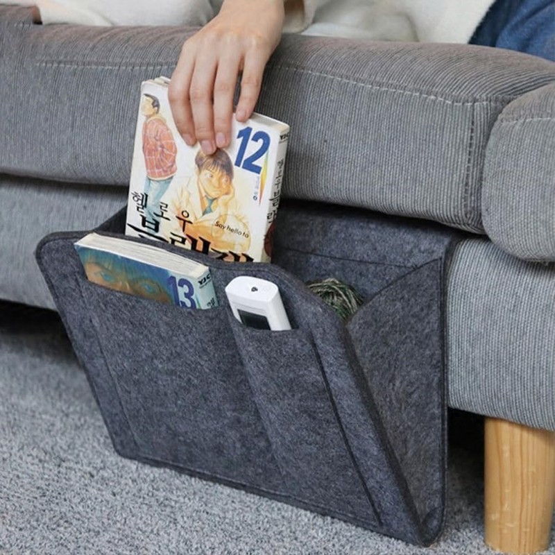 Fiacvrs Bedside Storage Pocket, Home Sofa Desk Bed Storage Bag, Felt Sofa Anti Slip Hanging Organizer Soft Book Bedside Storage Bag for Home Bed Rails, Sofa, Bunk Beds