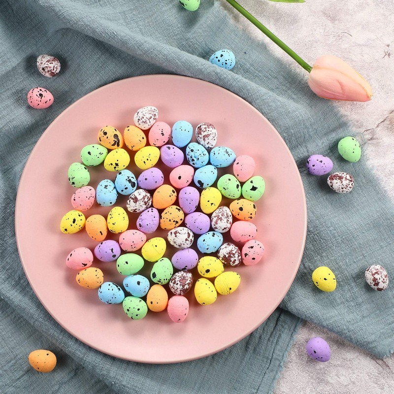 Fiada 450 Pieces Easter Eggs Decorative Foam Easter Eggs Ornaments for Crafts DIY Home Garden Decor, 0.6 x 0.7 Inch (Speckled Style)
