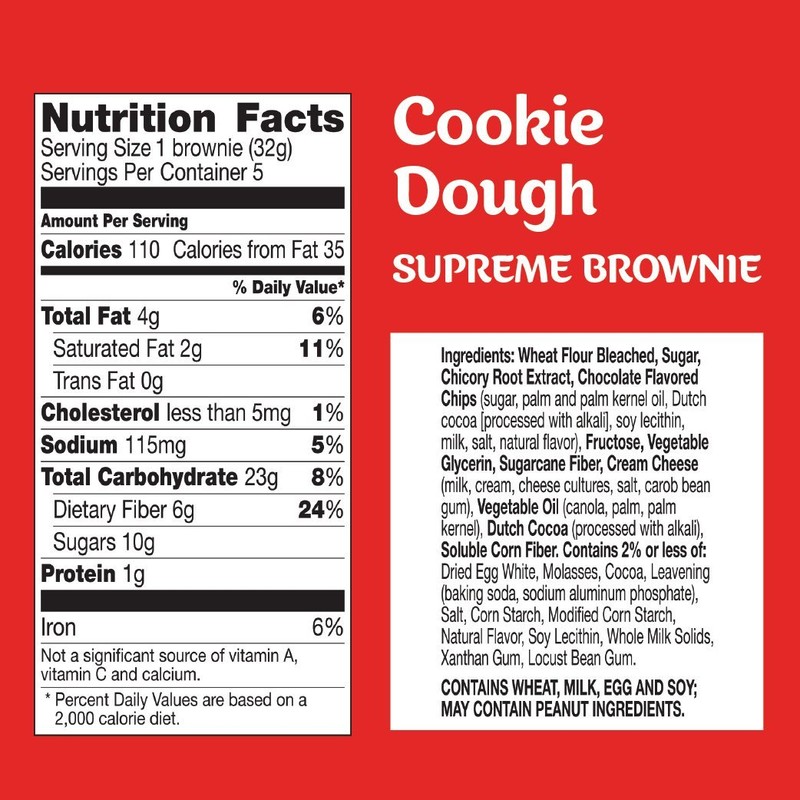 - COOKIE DOUGH FLAVOR: Don’t compromise on great taste when you can enjoy the irresistable taste of cookie dough in these Fiber One Supreme Brownies