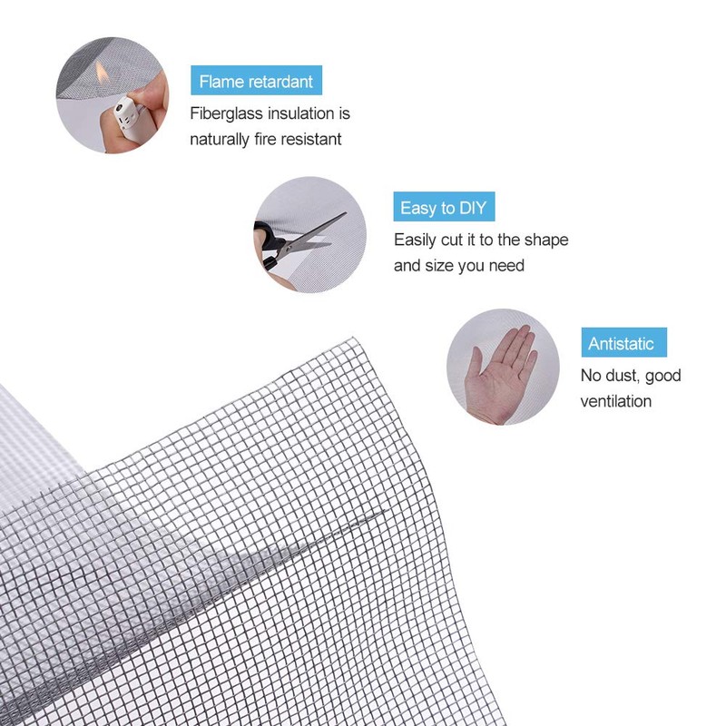 - HIGH QUALITY MATERIAL - The fiberglass screen roll is made of premium fiberglass mesh to ensure the superior quality, which is with excellent durability and flexibility, easy to care and clean, just rinse with water, not easy to crack or crease for long time using.