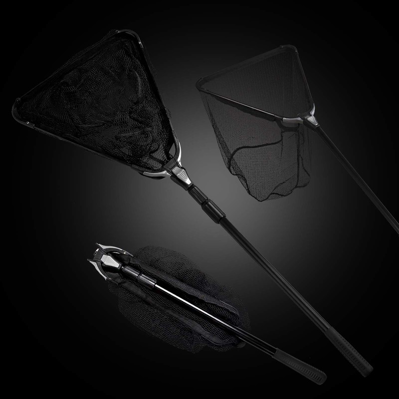 - Warm Reminders: We have three different models of landing nets. This is for 2-section foldable fishing net: Extend Length max.: 60" | Handle Length: 25"-40"(extendable) | Net Depth: 20" | Perimeter of the triangle Hoop: 65" | 25" when fully collapsed