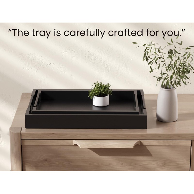 - 【Large & Small 2-Piece Set,Adaptable to Multiple Scenes】 The set contains two trays, large tray (16.93"x 11.81") and small tray (14.96" x 9.84"), the small tray can be perfectly nested in the groove of the large tray, saving space and convenient storage when not in use. Flexible to fit coffee table, living room, restaurant, bar and other scenes.