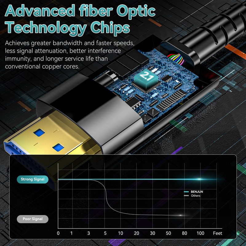 • Compared to 4K hdmi cable, 8K Fiber Optic hdmi cable supports 48 Gbps of bandwidth,Transmit audio,video and photos at lightning speed without having to wait for buffering
