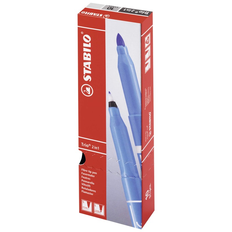 Fibre-Tip Pen and Fineliner - STABILO Trio 2 in 1 - Pack of 10 - Black