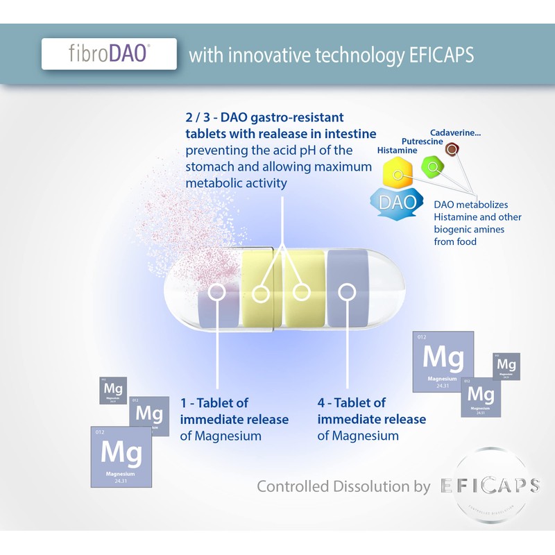 fibroDAO - Management of DAO deficiency - 60 capsules EFICAPS with enteric tablets - DAO enzyme and magnesium