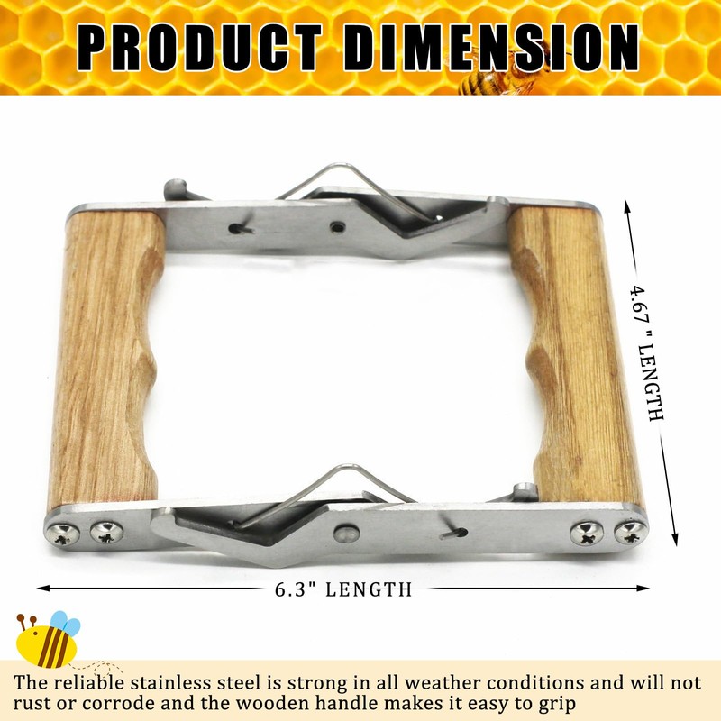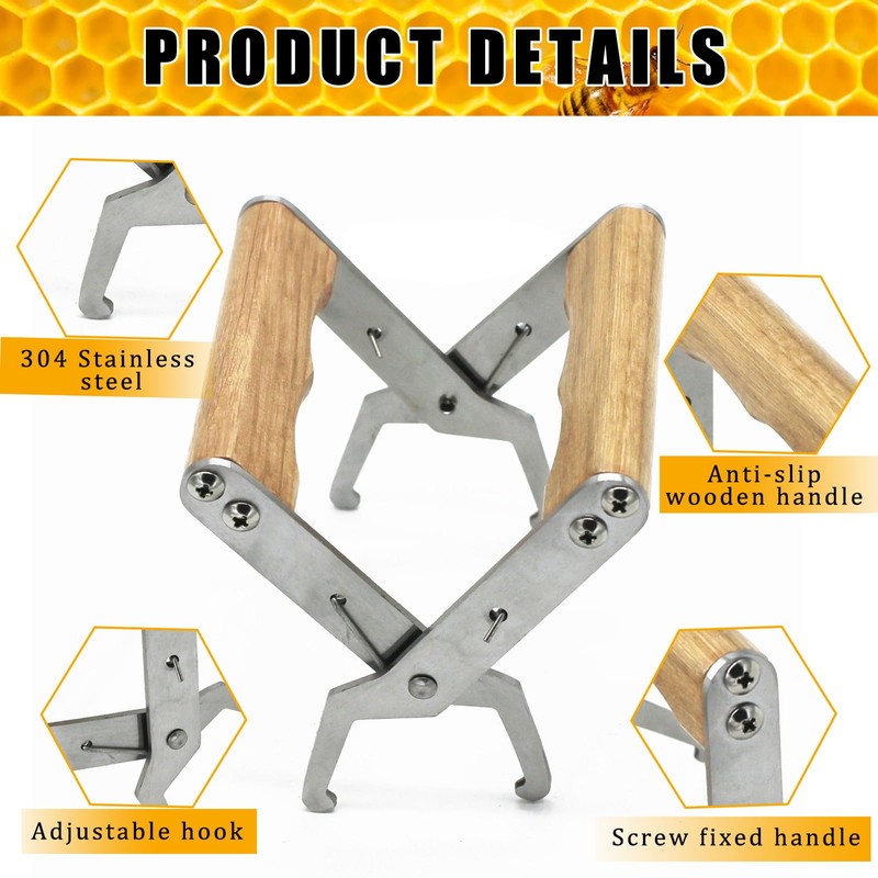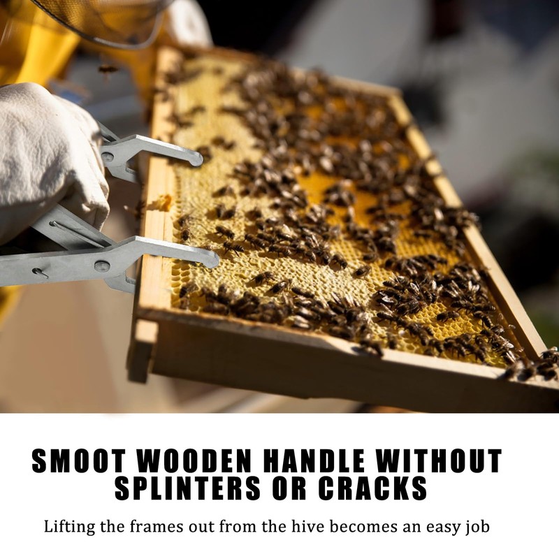 • Beekeeper's Safety: The wooden handle of the frame lifter ensures the safety of beekeepers when transporting bee frames. The smooth surface of the handle prevents any accidental injuries to the hands.