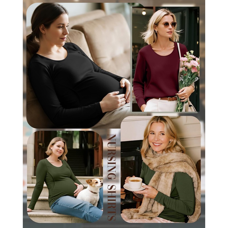 - 3-Pack Breastfeeding Shirts: Multipack long-sleeved maternity shirts. You can choose the right color according to different occasions. Combination purchase is more cost-effective. They are suitable for leisure, dating, parties, traveling, or as pajamas