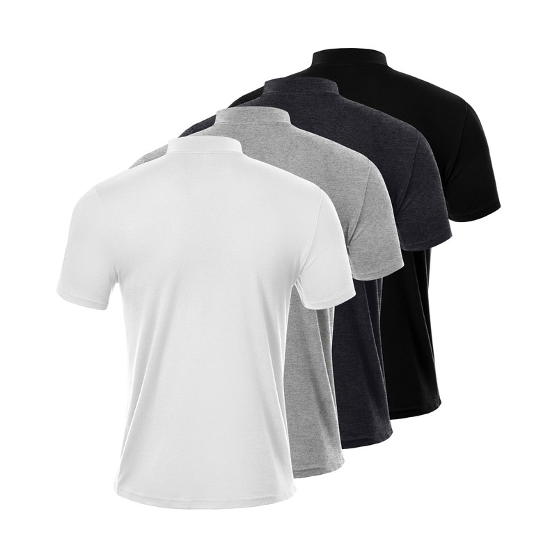 Ficerd 4 Pack Men's Mock Neck T Shirts, Short Sleeve Mock Turtleneck Undershirt Pullover Basic Causal Solid Tee Tops for Men (Black, White, Dark Gray, Light Gray,Large)