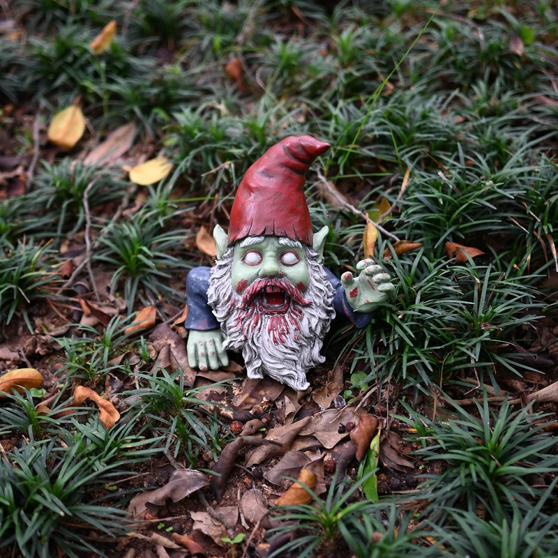 FICITI G150028 Zombie Gnome Garden Statue Sculpture, Scary Gnome, Halloween Decoration