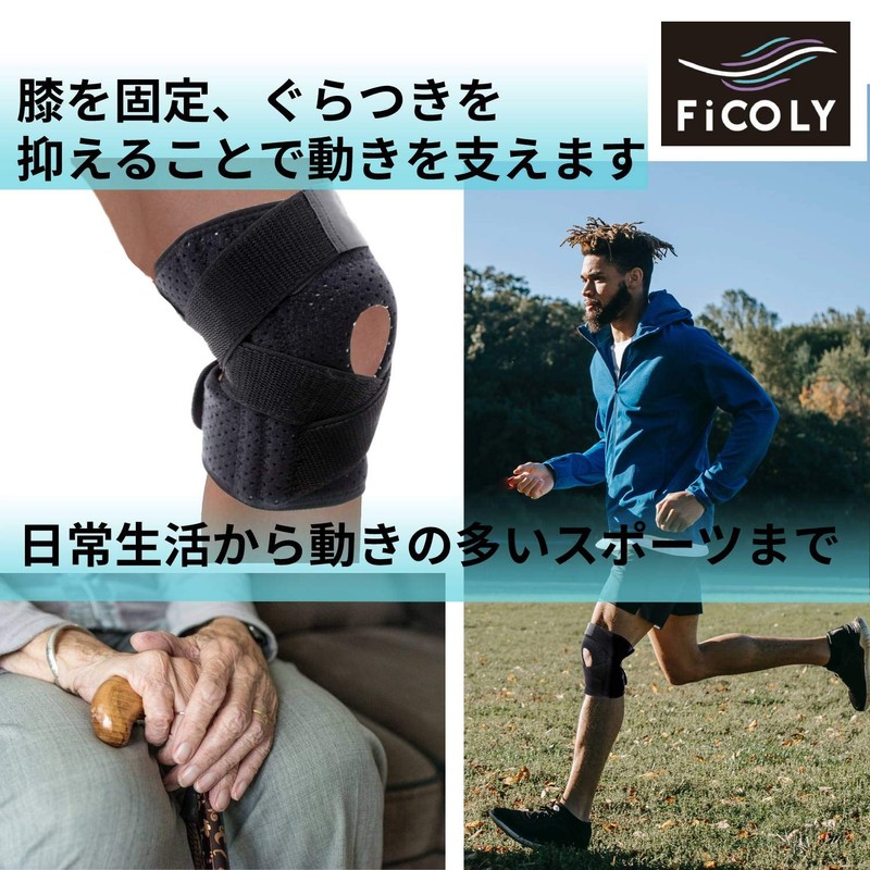 FiCOLY 膝サポーター 膝 サポーターひざ 固定 スポーツ ランニング スタビライザー 左右兼用 FK-2