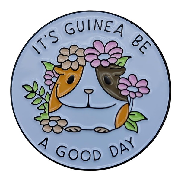 • 🐗 Delightful Design: This enamel pin features an adorable guinea pig surrounded by colorful flowers and leaves, with the whimsical text "It's Guinea Be A Good Day" - a charming pun that will bring a smile to your face.