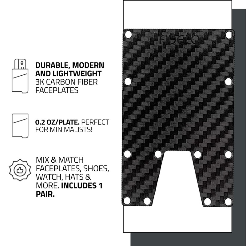 - Elevate your style with our eye-catching 3k carbon fiber faceplates for the Eclipse wallet. With a fingerprint & scratch-resistant matte finish, these lightweight plates offer strength & durability.