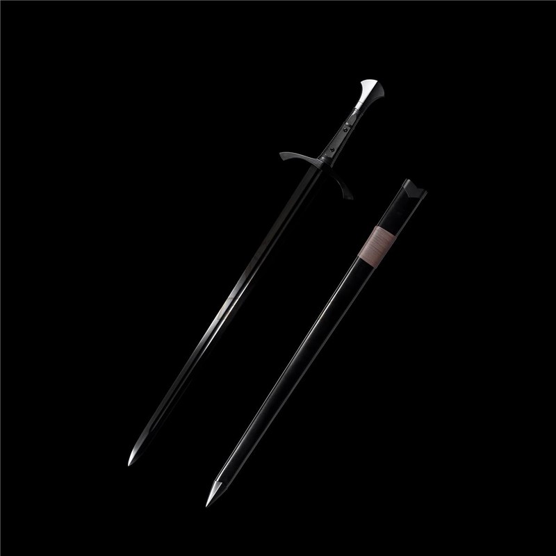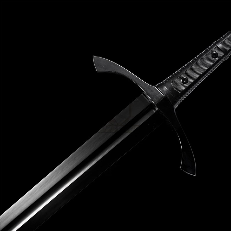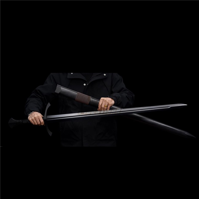 Fidestisan 45inch Handmade Medieval Claymore Real Long Sword Swords Full Tang Black Blade | Self Assembly Detachable | Modern DIY Style | Spring Steel 65Mn Bend 60° | with Scabbard (Black)