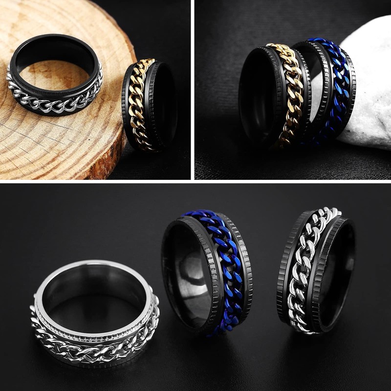 - ❤️ Fidget Spinner Rings Set - The spinner fidget rings set including 5 colors rings. It was designed with rotatable design, which helps to release your stress and reduce anxiety by rotating the spinner chain. Width: 8mm; Size available in: 6,7,8,9,10,11,12,13. Suitable for men and women.