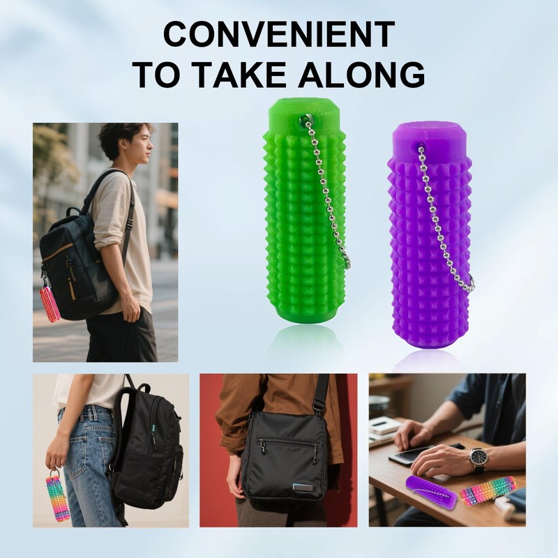 - UNIQUE, STYLISH DESIGN: This Stress Relief Sensory Toy keychain that can go in your backpack, on your body. Available in a variety of bright and fun colors to match different wearing styles