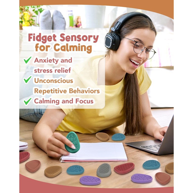 - Quiet Portable Fidgets for Anywhere: The fidget texture stones is small, quiet and hidden, can be easily placed in your pocket and carried with you to meet your fidgety hands at any time. Feels nice sensory expercience in the hand, grabbing some creativity from it and makes no noise, not being a major distraction for others