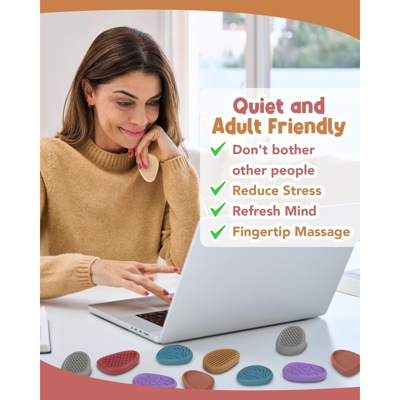 - Adult Fidget Toys for Anxiety and Stress: The size of each fidget worry stone fits perfectly for holding in your hand, making it easy for adults teens kids to repeatedly rub with one hand. Keep your hands busy and mind focused during work, helping to quit bad habits like nail-biting, smoking, and shaking legs. Great office desk fidget sensory toys for adults improve focus and ease anxiety