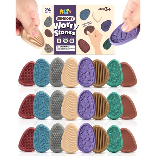 Fidget Toys Adults Sensory Stone: 24 Pack Texture Worry Stone for Kids Calming - Sensory Autism Toys for Anxiety Relief - Quiet Small Fidgets for Easter Basket Stuffer