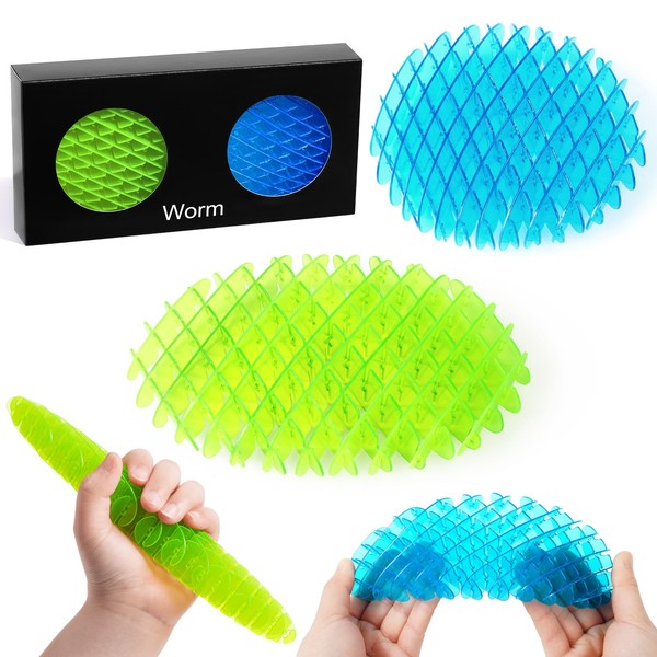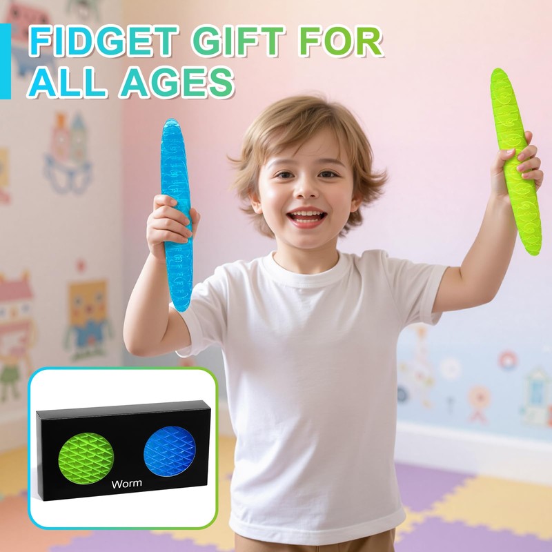 - 【Stress and Anxiety Relief 】The 2-pack Yisryerow Worm Fidget Toy, which includes a small green one and a small blue one, delivers a satisfying tactile sensory experience. The repetitive popping and wriggling actions help to relieve stress and anxiety, and and make it an ideal tool for sensory play. It also serves as a toy for children to play together, fostering social interaction, and it’s ideal for parent-child bonding, allowing parents and kids to enjoy quality time.
