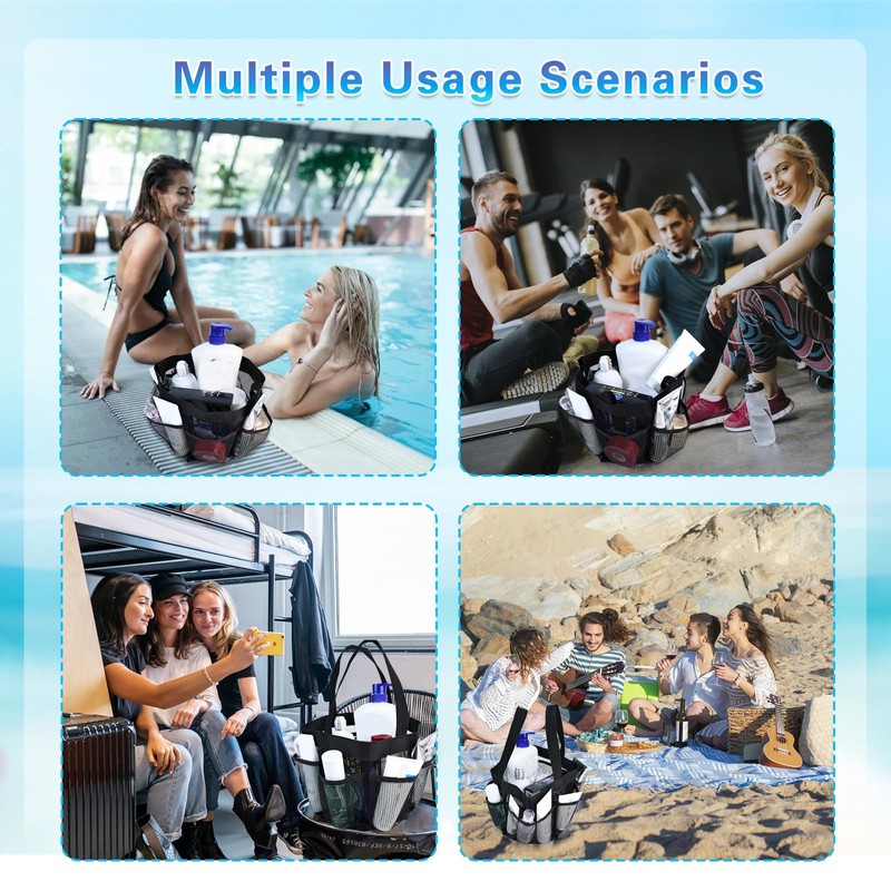 - Large Capacity: Our mesh beach bag has 8 pockets to provide you with storage space. You can put the toiletries you need in bath caddy