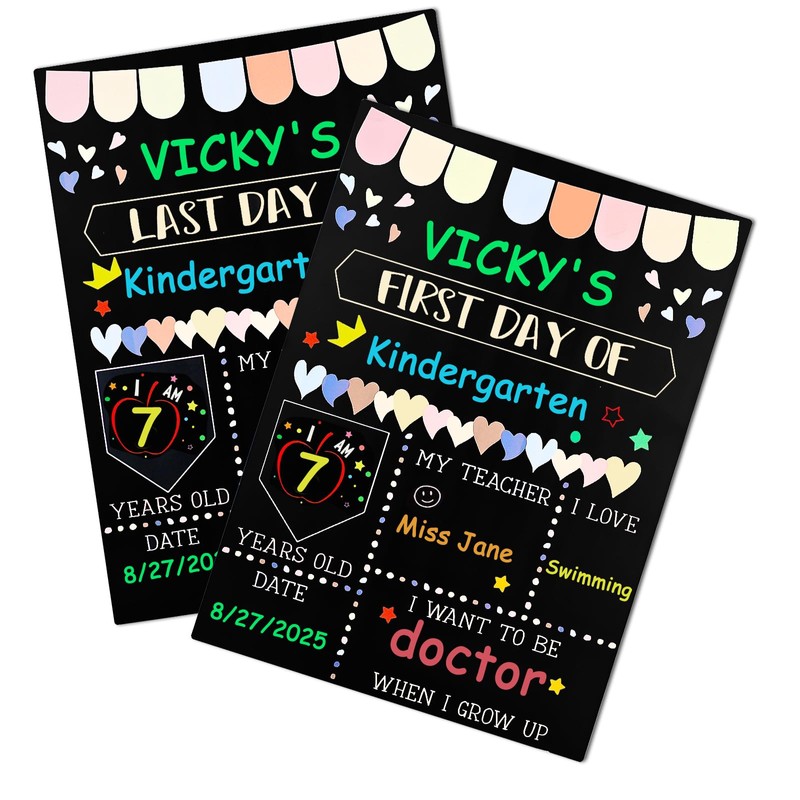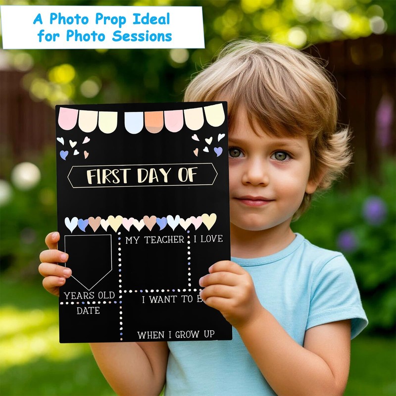 - Capture Lasting Memories: With Our first and last day of school board for back to school supplies. 9.8”x7.9” chalkboard to celebrate milestones and document your child’s growth. Commemorate your child’s last day of school, first day of kindergarten, preschool, 1st grade or any grade with a photo prop ideal for photo sessions.