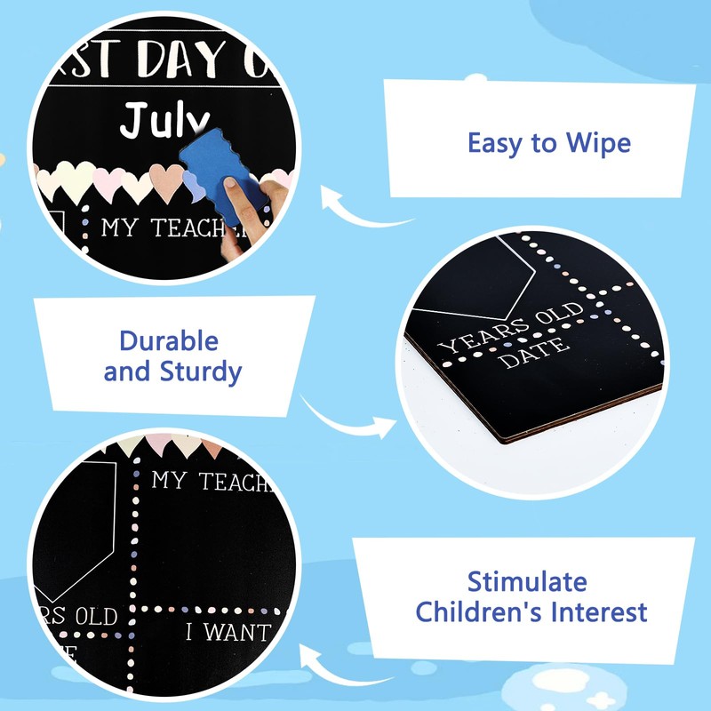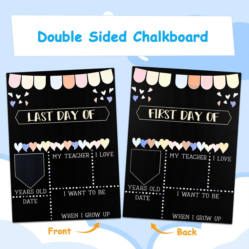 - Double Sided Chalkboard: Our back to school chalkboard sign features a double-sided design with "First Day of School" on one side and "Last Day of School" on the other, making it versatile for capturing those special milestone moments at the beginning and end of the school day.