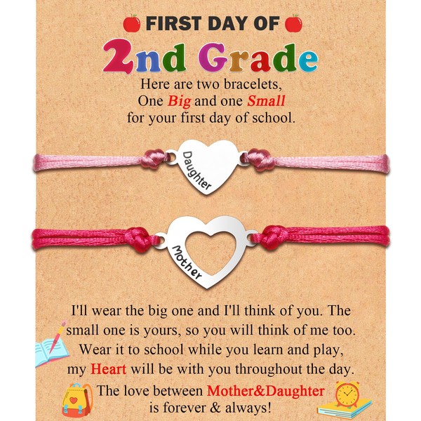 - Back to School Bracelet: Sweet package, you will receive: 2x Matching Hearts Bracelets, 1x Sweet First Day of 2nd Grade Gift Card, 1x blank greeting card, 1x lovely jewelry bag. Best back to school gifts ideas for mom and daughter on 1st day of 2nd grade