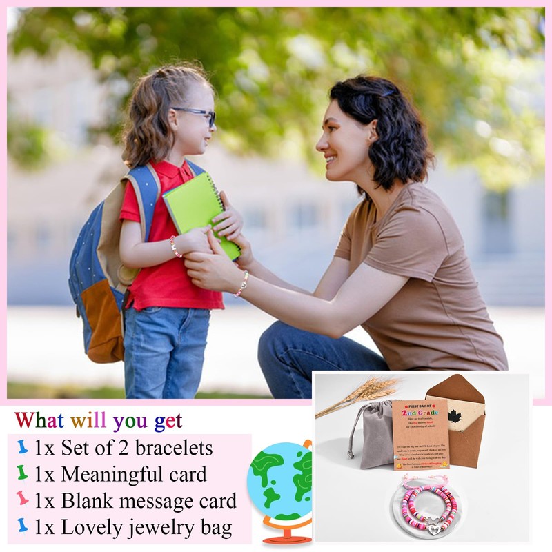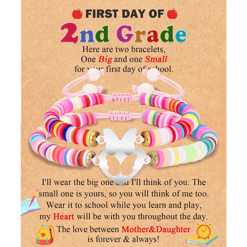 - Back to School Bracelet: Sweet package, you will receive: 1x Mommy and Me Bracelets, 1x Sweet First Day of 2nd Grade Gift Card, 1x blank greeting card, 1x lovely jewelry bag. Best back to school gifts ideas for mom and daughter on 1st day of 2nd grade