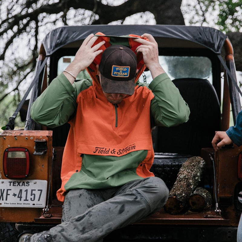 Field & Stream Men's Cloud Cover Nylon Anorak Jacket, Orange/Dark Olive, Large