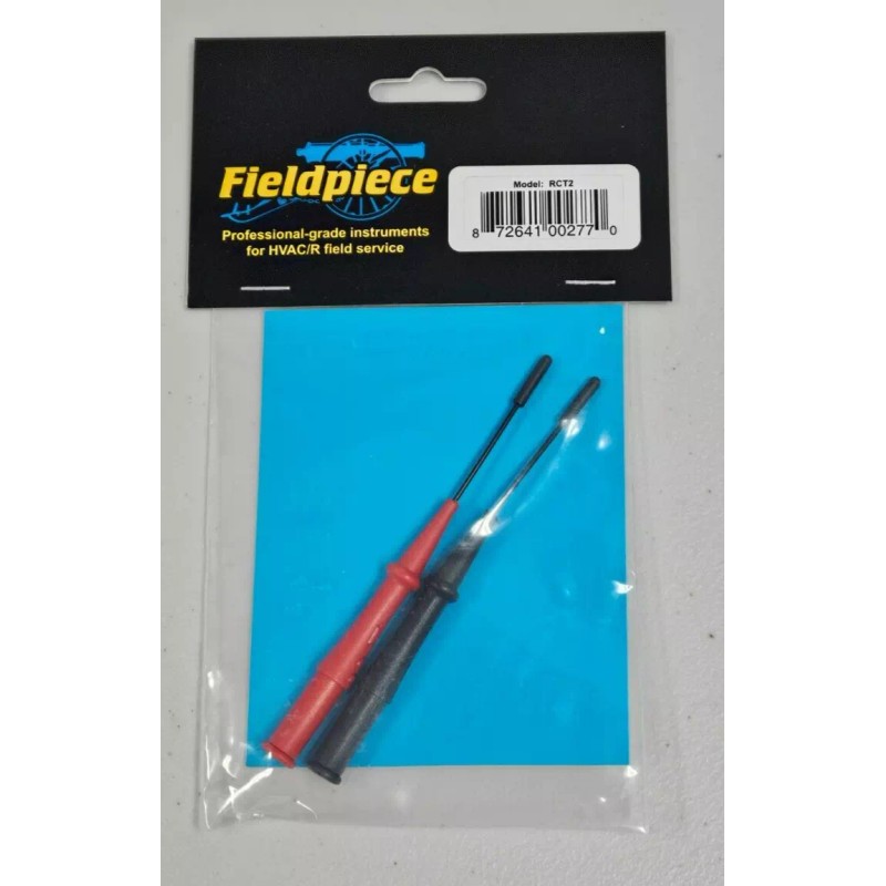 The Fieldpiece RCT2 extended probe tip set allows you to test connector plugs without dismantling the connector plug as well as hard to reach test points often found on tightly packed mini-split systems.