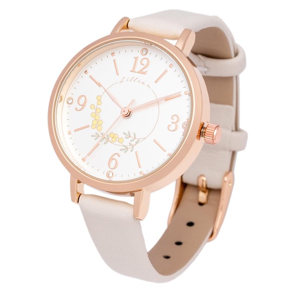 Fieldwork MKL2611-1 Women's Analog Wristwatch, Leather Strap, Simple, Floral Pattern, Rosam, White, white, Modern