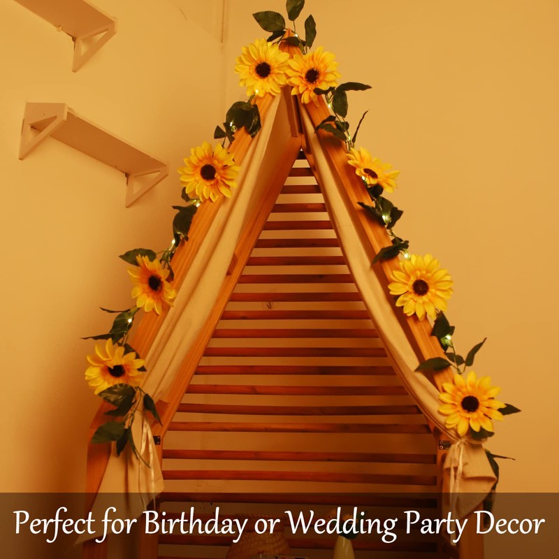 • đŸŒ»ă€MULTIPLE WAYS OF USE】This LED sunflower string lights can be used in room , garden, hotel, balcony as a decoration in Christmas, Holidays, Wedding, Birthday, or other parties. As a Festive atmosphere lights, it is a good choice.