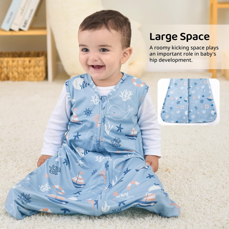 - 【Comfortable Temperature】This thin sleep sack features 0.5 TOG and sleeveless design, offering moderate warmth, ideal for spring, summer or air-conditioned rooms. The lightweight fabric delivers peaceful naps and all-night comfort for baby. With its soft, stretchy design, this baby wearable blanket provides just the right amount of coziness—keeping your baby snug and content.