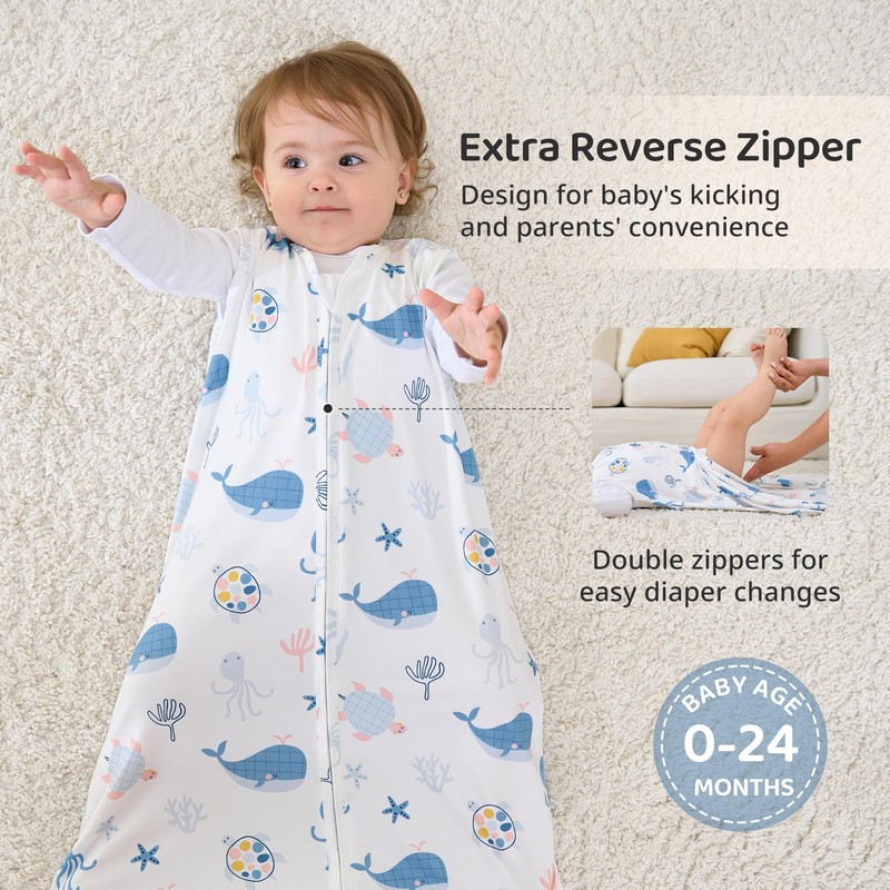 - 【Smooth 2-Way Zipper】Our baby sleep sack equipped with 2-way zipper allows quick diaper changes without fully unzipping it, helping your baby to stay asleep. We have added a protective cover to the top of the baby sleeping bag to protect baby's delicate skin from scratches. All of this is to give you more peace of mind.