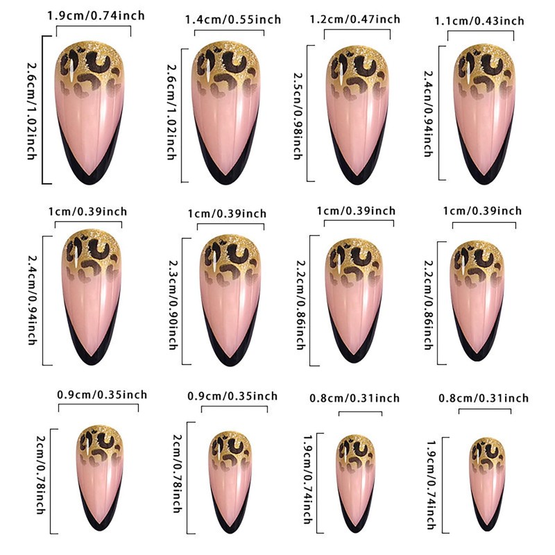 - 【Includes Tool Kit】You'll get 24 cute almond shaped false nails in 12 sizes. 1 mini nail file, 1 small wooden stick, 1 piece of nail glue sticker. Glue almond fingernails are perfect for most people's nails.