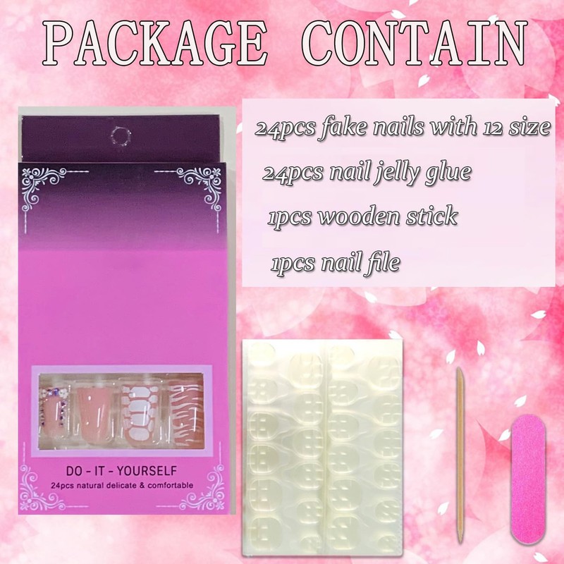 - Reused: If you use jelly adhesive nails tabs to fix false nails, it can be easily removed without affecting the nails for repeated use, but the nail glue sticker is not as good as liquid glue, if you want to keep it for a longer time, you need to use liquid glue(Cannot be reused)